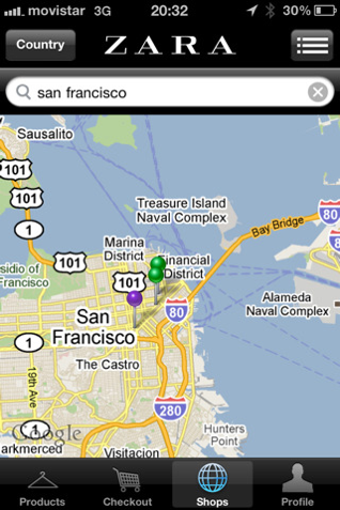 Zara Shop Online utilise aussi la géolocalisation pour trouver les magasins Zara autour de soi. Vous accédez à une carte ou à la liste des adresses de magasins proches.